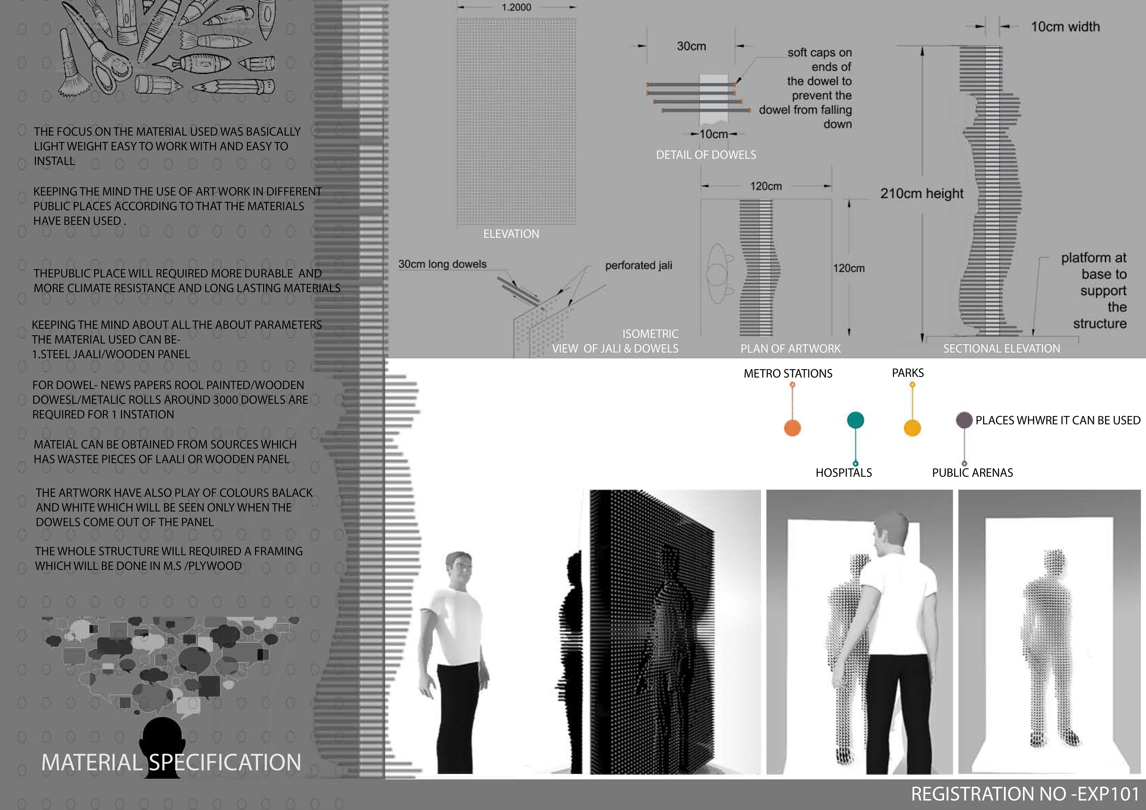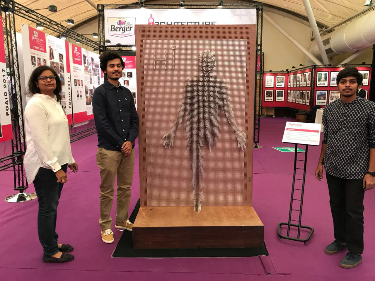 "Expression" is the award-winning art installation that secured the National Platinum Prize at the 2017 FOAID India competition. Crafted from thousands of discarded straws, this installation embodies the fusion of sustainability and artistic expression. These straws are meticulously stacked within a perforated MDF sheet, creating a captivating, three-dimensional mosaic. What sets "Expression Art Installtion" apart is its interactive nature. Visitors are encouraged to manipulate the straws, crafting their unique patterns and designs on the grid-like canvas. This transformative approach to art challenges conventional boundaries and underscores the beauty in everyday materials. this installation serves as a powerful reminder of the potential within waste and the universal capacity for creativity. It stands as a testament to the limitless possibilities of art and its ability to inspire change and personal expression.